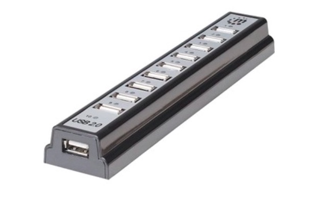 Concentrador USB Manhattan – USB – Externo – Negro – 10 Total USB Port(s) – 10 USB 2.0 Port(s) – PC, Mac .