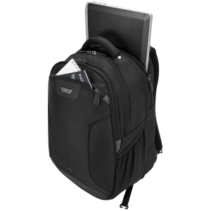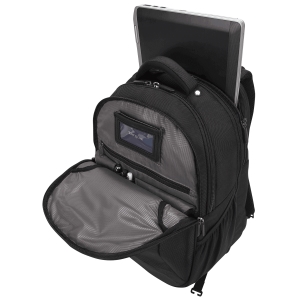 | Marketing Text | ” La mochila Targus de 15.6 ”para viajeros corporativos, amigable para los puestos de control, está hecha para viajar, ya sea una conferencia en la ciudad o una presentación en todo el país. El diseño patentado y amigable del punto de control de la mochila se descomprime para quedar plano para que no tenga que quitar su computadora portátil en las pruebas de TSA, y una correa oculta de la carretilla se adhiere a su equipaje rodante para un viaje sin esfuerzo. Es fácil acceder a su equipo y dispositivos con una estación de trabajo con cremallera que organiza sus bolígrafos y estilos, tarjetas de visita y suministros. El rincón suave forrado solo para su tableta lo mantiene seguro, y hay un compartimento de archivos dedicado con divisor y bolsillos de malla para almacenamiento de energía. Un portabotellas mantiene el café o el agua al alcance de la mano. Con nylon balístico de grado militar y el sistema patentado SafePort® Air Cushion que ayuda a prevenir daños por caídas y golpes laterales, usted sabe que sus dispositivos están protegidos. Su fondo resistente al agua ofrece estabilidad y estabilidad. También es cómodo de llevar, con un panel posterior de malla de aire moldeado y correas de hombro flexibles que se flexionan para soportar la mayor parte del peso, en lugar de los hombros. Nuestro sistema de amortiguación de aire SafePort® protegido por patente es una cámara única que combina amortiguación de aire ventilada y relleno de espuma de alta densidad. Estas almohadas de poliuretano ajustables especialmente diseñadas “flotan” dentro de la carcasa de la computadora portátil, proporcionando una protección superior contra impactos laterales y verticales. Hecho de nylon balístico 1680 proporciona un material elegante y liviano que es resistente al agua y al desgaste para proteger sus suministros de los elementos. Con un compartimento para tableta, una bolsa de accesorios extraíble y un bolsillo lateral con cremallera, la Mochila Corporate Traveler está increíblemente organizada para que encontrar sus bolígrafos, teléfono y más sea rápido y fácil. Los separadores de archivos organizan sus documentos y los mantienen vistosos. Un bolsillo lateral de malla en el lateral coloca la botella de agua o la taza de café al alcance de la mano. El diseño patentado de punto de control de la mochila Corporate Traveller de 15.6 ”le permite enviar su mochila a través de exámenes TSA sin quitar su computadora portátil. Simplemente desabroche la cremallera central para colocar la bolsa plana. La mochila de viajero corporativo de 15.6 ”está hecha para la comodidad de la criatura. Ha diseñado cuidadosamente el acolchado de malla de aire sobre todo el paquete, incluidos los paneles gruesos que contribuyen al flujo de aire que lo ayudan a mantenerse fresco. Pero donde entra en contacto con usted bajo una carga es donde prestamos especial atención. Las correas contorneadas están forradas y acolchadas y se hicieron para flexionar y soportar la mayor parte del peso de su equipo. La correa de esternón ajustable le brinda soporte adicional.” |